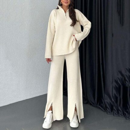 ✨New Arrival✨Women’s Cozy Ribbed Knit Two-Piece Set with Slit-Leg Pants💕