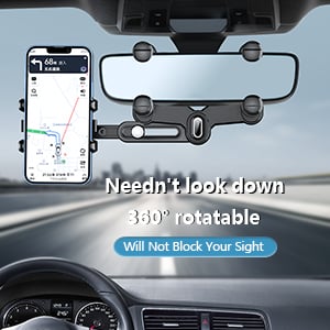 - Never Block the line of sightCar phone mount designed for car rearview mirror. the adjustable phone holder for car can be levels with eye viewing. keep your eyes on the road. No longer looked down at the phone and never block your sight. make sure your driving more safe and comfortable.