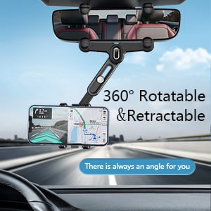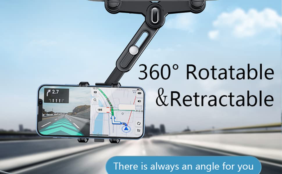 - Flexoble and AdjustableNew version multifunctional rearview mirror phone holder adopts a 360°rotating structure. Switch between horizontal and vertical screens at will. The arm length can be retractable by 0~3.14inch.you can swivel the mount to any angle so that you can get the best viewing angle.