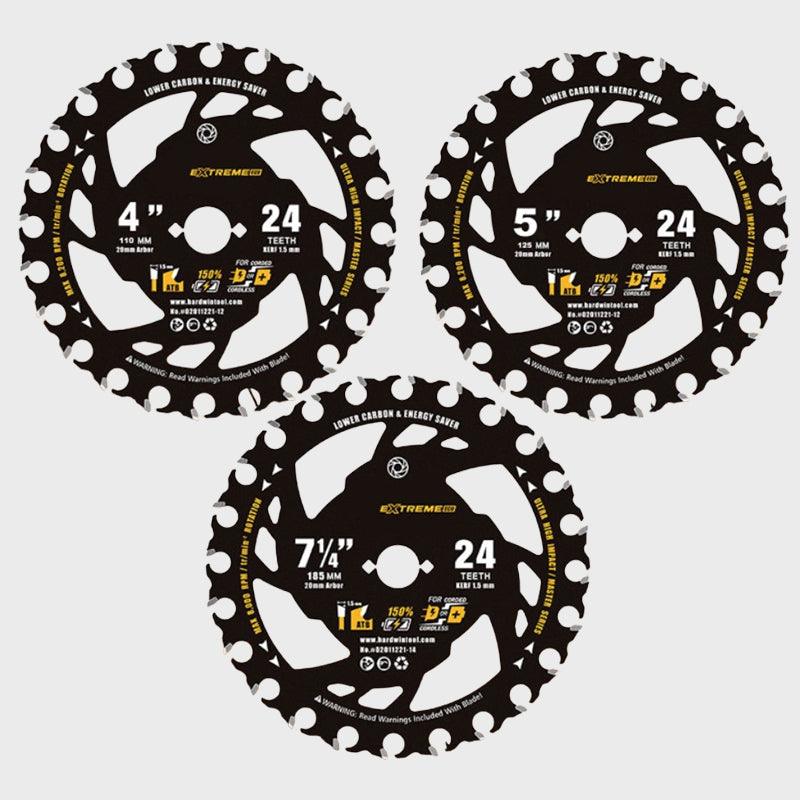 SOUND-ABSORBING HEAT SINKS – This saw blade features built-in sound-absorbing heat sinks that effectively dissipate heat generated during cutting. The heat sinks help to reduce the temperature of the blade. preventing overheating and prolonging the lifespan of the blade.